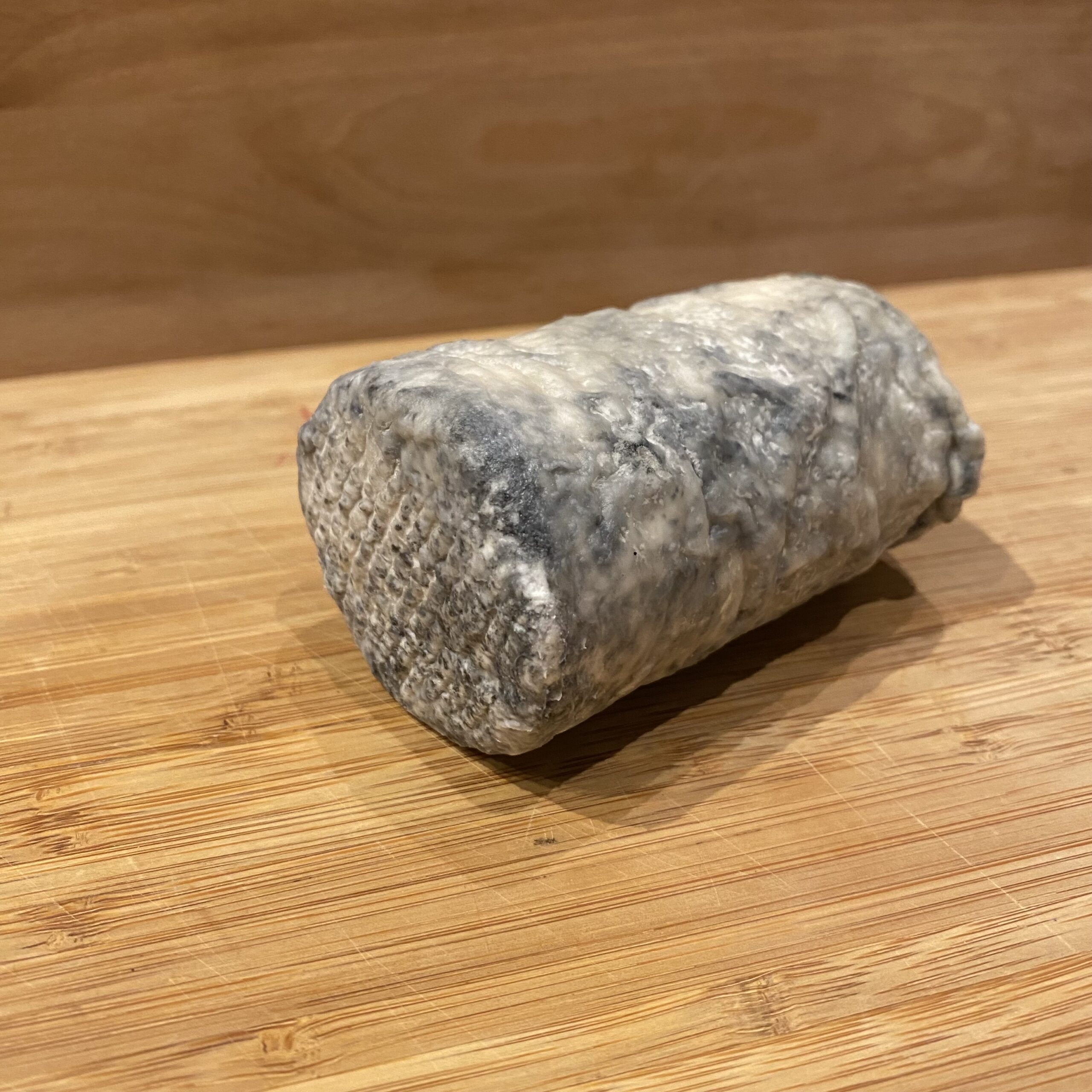 Fromage de chèvre cendré de la Ferme de la P’tite Jersey. Le prix sera fixé en fonction du poids réel du produit (25/kg).