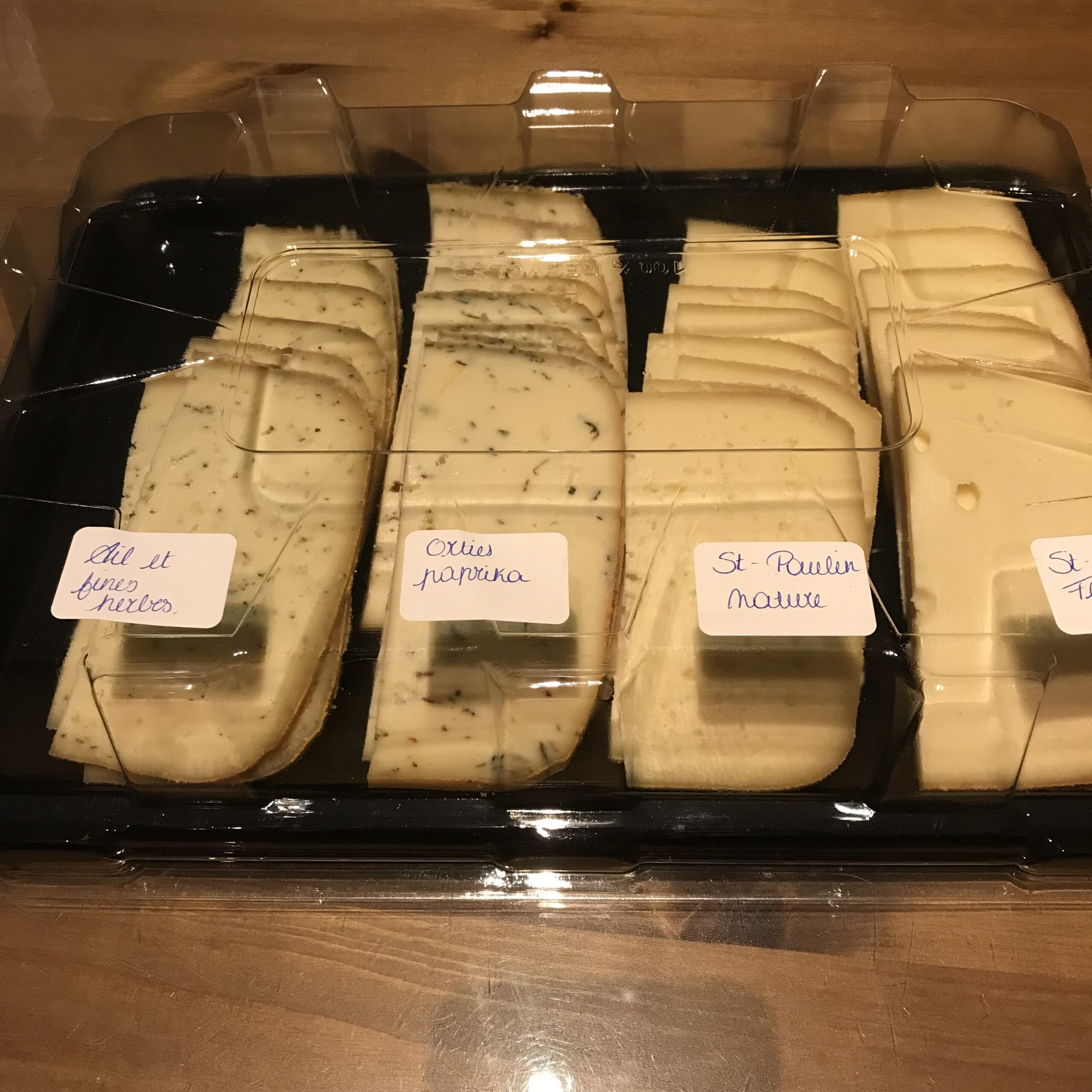 Assortiment de fromages pour raclette de la ferme des quartiers. (+/- 200 gr par personne à 24€ le kg). Le prix sera fixé en fonction du poids réel des produits.